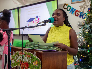 Continuing the ceremony, Descartes and Julmiste, took turns calling the recipients for the delivery of certificates and hygiene kits for children, one of the most anticipated moments. Each went up to the stage to collect their certificate.